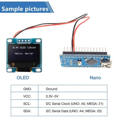 PANTALLA OLED 0,96" SSD1306 I2C SPI 128x64