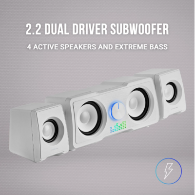 SUBWOOFER 2.2 DUAL DRIVER: Altavoz con sistema de subwoofer 2.2 DUAL DRIVER con 4 altavoces activos para un rendimiento de BASS extremo.