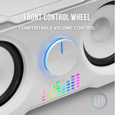 CONTROL FRONTAL: Dispone de una rueda de control frontal del volumen: Accede y controla con total comodidad el volumen de tus altavoces.