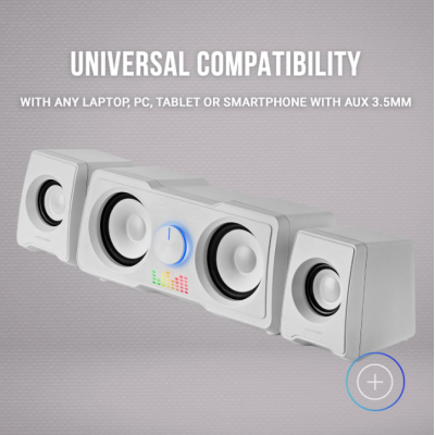ALTAVOZ GAMING RGB: Altavoz USB compacto con entrada de audio Jack 3.5mm y una espectacular iluminación dinámica RGB Flow frontal.