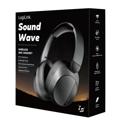 Información del producto "Auriculares BT 6.0 Sound Wave, ANC, entrada auxiliar de 3,5 mm, 15 horas de batería, color negro"