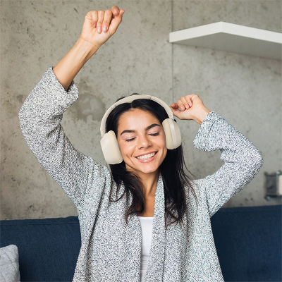 Referencia: BT0071CAuriculares BT 6.0 Sound Wave, ANC, entrada auxiliar de 3,5 mm, 15 horas de duración de batería, color crema/plateado