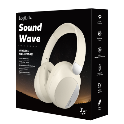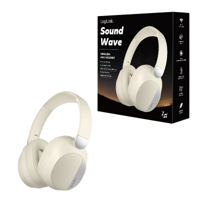 Información del producto "Auriculares Bluetooth 6.0 Sound Wave, ANC, entrada auxiliar de 3,5 mm, 15 horas de batería, color crema/plateado"