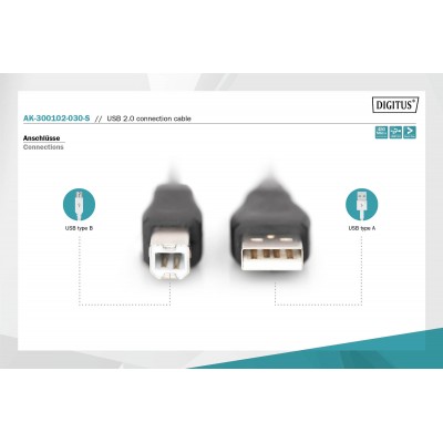 Referencia: USB203NCable de conexión USB, tipo A - B 3,0 m, apto para USB 2.0, negro