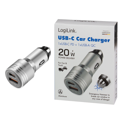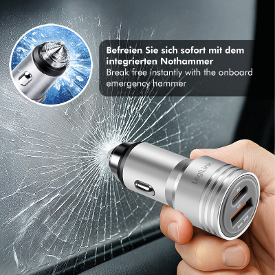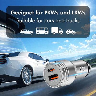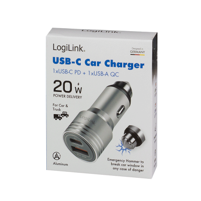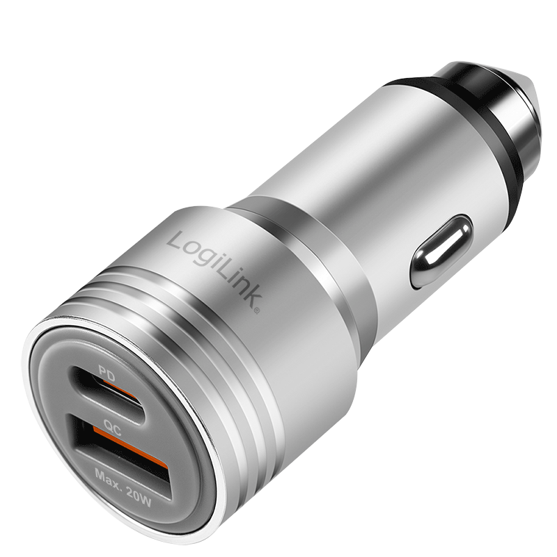 El PA0228A es un potente adaptador de carga de CC para sistemas eléctricos de vehículos de 12 V o 24 V. El dispositivo cuenta con una configuración de interfaz dual: un puerto USB-C con Power Delivery 3.0 (hasta 20 W) y un puerto USB-A con Quick Charge 2.0 (hasta 18 W). Gracias a la compatibilidad con PPS (fuente de alimentación programable), la tensión de salida se ajusta dinámicamente a las necesidades del dispositivo para optimizar la eficiencia de carga y minimizar la generación de calor. Su robusta carcasa de aleación de aluminio está diseñada mecánicamente para funcionar como un rompecristales (martillo de emergencia) en caso de emergencia. Los circuitos de protección integrados contra sobrecorriente, sobretensión y sobrecalentamiento garantizan la seguridad funcional del hardware conectado.