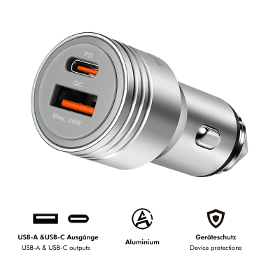 Referencia: PA0228ACARGADOR COCHE USB-A USB-C 20W