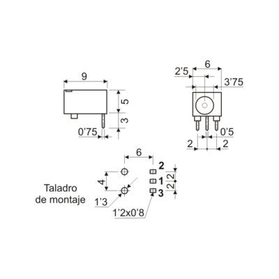 Referencia: CBA13BBase alimentación miniatura, para circuito impreso.