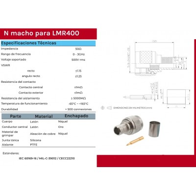 CONECTOR "N" MACHO CRIMPAR LMR400