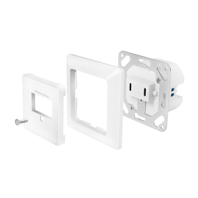- Carga paralela de dispositivos a través de 2 puertos USB-C instalados en una toma de corriente de pared