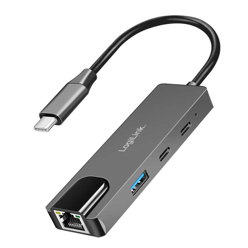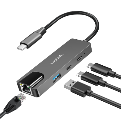 Información del producto "Hub USB 3.2 Gen 1, 3 puertos, con adaptador Ethernet Gigabit 2.5G, gris espacial" de LogiLink