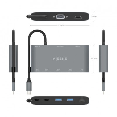 Referencia: ASUC8P010GRUSB-C Dock 8 en 1, USB-C A 1xHDMI, 1xVGA, 1xRJ45, 2xUSB-A, 2xUSB-C 5G, 1xUSB-C PD, Gris, 20 CM