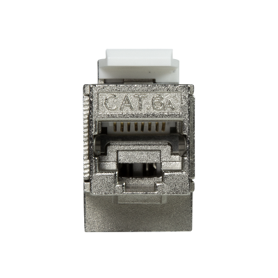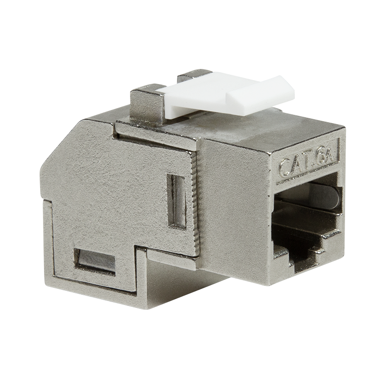 Acoplador en línea Keystone Cat.6A STP, ángulo de 90°, carcasa metálica