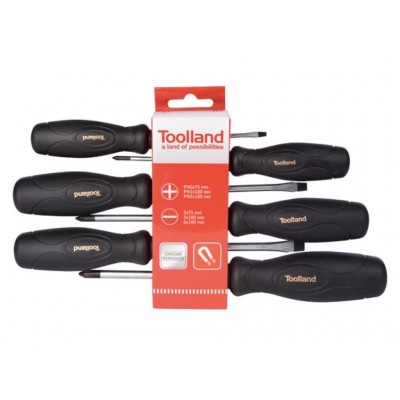 Referencia: HSET20Con este destornillador establecido desde Toolland, tendrá un conjunto básico de destornilladores a su disposición. El conjunto consta de 3 destornilladores ranurados y 3 destornilladores de Phillips. El eje está hecho de Chrome-Vanadium y presenta una punta magnética.