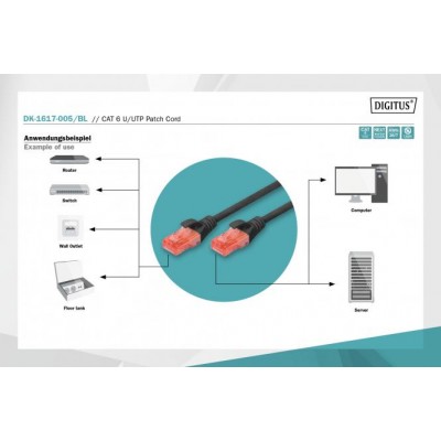 Cable de conexión U-UTP CAT 6, cobre, LSZH AWG 26/7, longitud 0,50 m, color negro