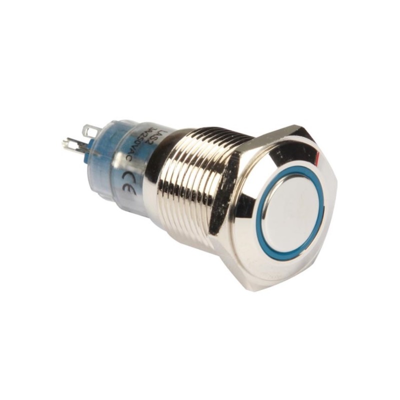 PULSADOR REDONDO DE METAL - SPDT 1NA 1NC - ANILLO AZUL