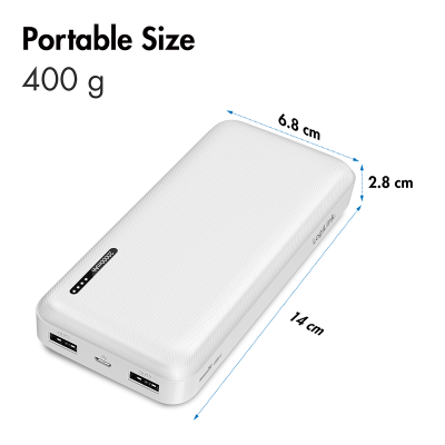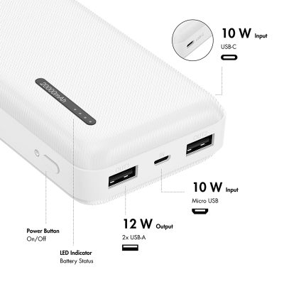 POWERBANK 20.000 mAh 2x USB-A, 1x USB-C, 10 W max. Blanco