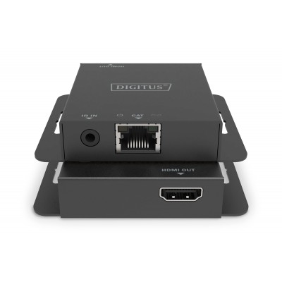 Referencia: DS55519El kit extensor HDMI prolonga señales AV Full HD a una distancia de hasta 70 m; las señales 4K/30 Hz se pueden prolongar hasta una distancia de 40 m a través de un cable de red CAT6 (o superior). La unidad emisora dispone de un HDMI-Loop Out para la conexión de un monitor local. Gracias a PoC (Power over Cable), solo el emisor necesita una alimentación eléctrica. La transmisión IR permite controlar la fuente de señal cómodamente con el control remoto desde el receptor (pantalla de salida). El volumen de prestaciones también comprende una función EDID-Copy de la pantalla de salida en el receptor o en el HDMI-Loop Out; esta se puede seleccionar mediante el conmutador.