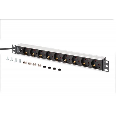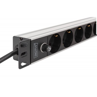 Las regletas DIGITUS® son la solución perfecta para su armario de red o servidor de 482,6 mm (19"). Optimizadas para el montaje en armario, las regletas DIGITUS® con 220-240 V a 50-60 Hz le ofrecen el mejor rendimiento con una carga adecuada. El material de montaje de 482,6 mm (19") suministrado garantiza una fijación óptima a los raíles perfilados de sus armarios. Cada regleta de enchufes puede montarse horizontal o verticalmente y, dependiendo del tipo de armario, es posible montar la regleta de enchufes con las tomas hacia arriba o hacia abajo.
