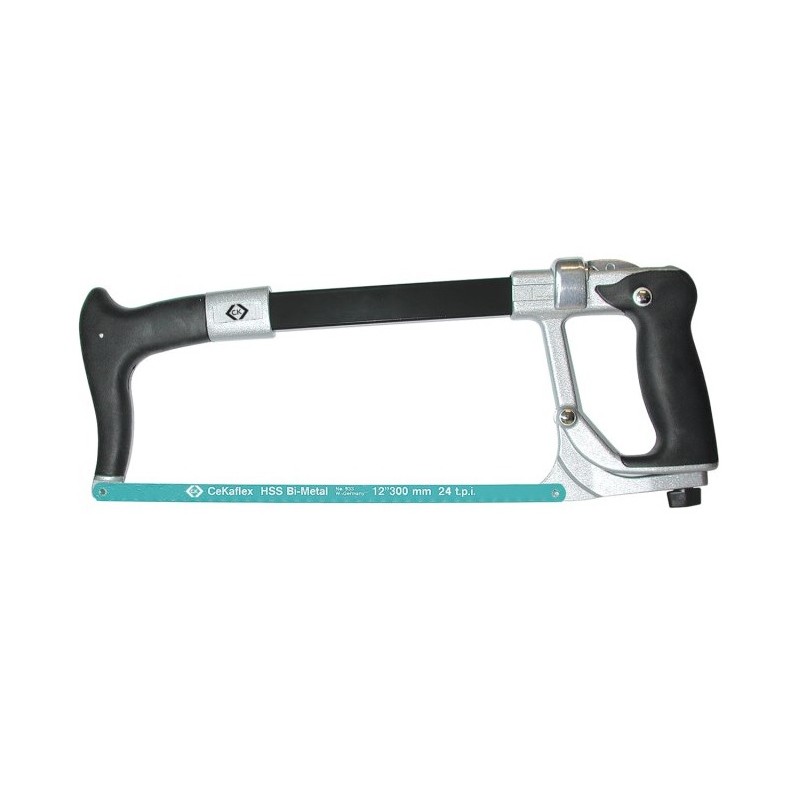 Sierra para metal de alta resistencia y calidad premium, con empuñaduras de goma para mayor comodidad y control.