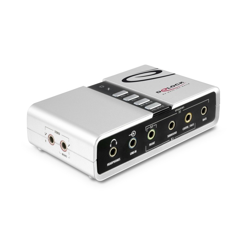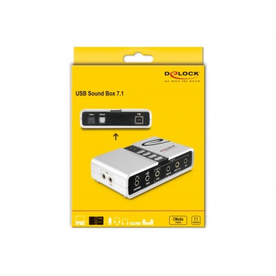 La Caja de Sonido del USB 7.1 de Delock amplía el PC o el portátil mediante una tarjeta de sonido. Mediante la contratación externa del procesador de sonido, todas las influencias perturbadoras se pueden minimizar de modo que se conserva un sonido perfecto. Solo hay que conectar la Caja de Sonido a un puerto USB libre del PC o portátil y conectar los altavoces o auriculares a la misma. Este producto es ideal para aplicaciones como Skopie, cuando se usa auriculares. ¡El resultado es fenomenal!