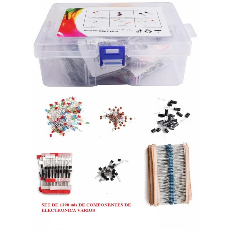 KIT DE 1390 COMPONENTES ELECTRONICOS VARIOS